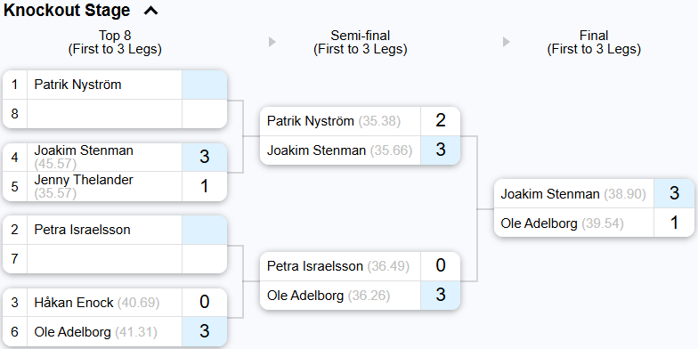Grattis till vinsten Joakim Stenman. Även grattis till Petra Israelsson som med dagens högsta utgång på 74 vann en middag.Nakka: Terassens söndagcup